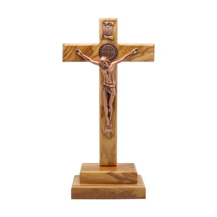 十字架-圣本笃-橄榄木染胡桃木色-带底座-27x15cm