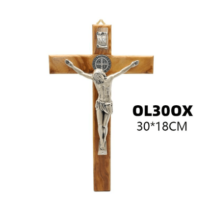 金属十字架-圣本笃-银色圣尸嵌入橄榄木-20×9.5cm