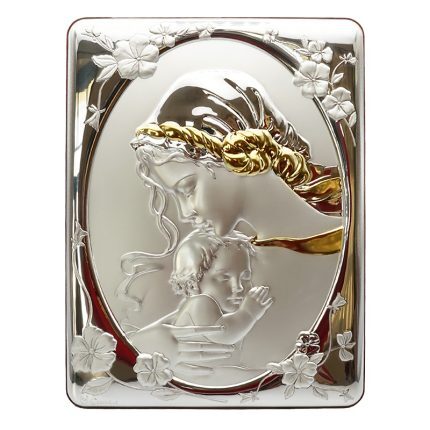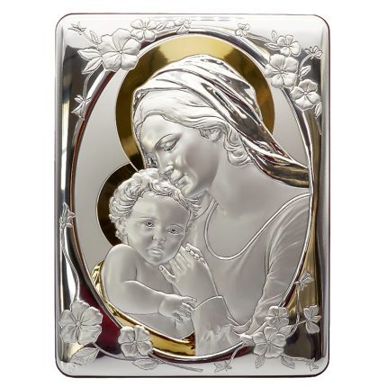 银浮雕摆台-圣母抱耶稣款二-25X33CM