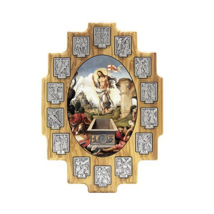 橄榄木挂件-苦路-合金牌-第十五处图案-25x18cm