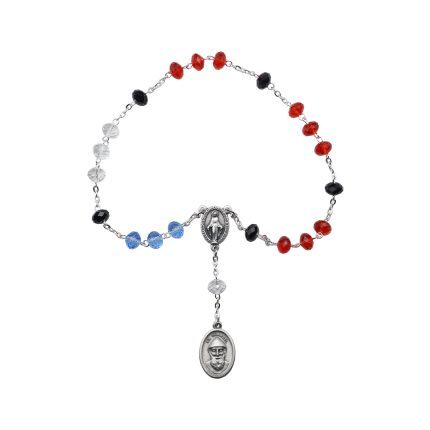 玫瑰念珠-桃木套装-圣家-彩色-925银浮雕像-带盒
