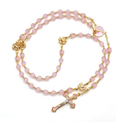 玫瑰念珠-圣爵蝴蝶结-粉水晶/粉水晶-6mm送念珠包
