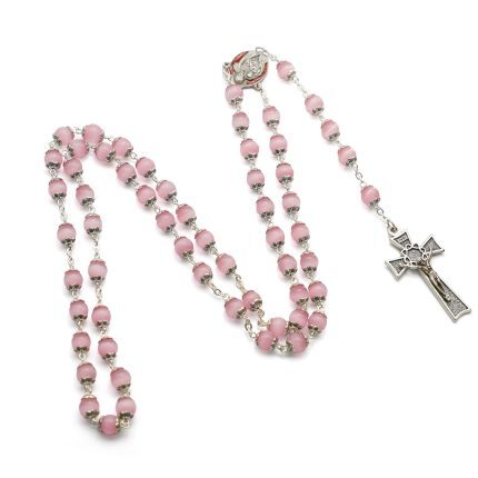 玫瑰念珠-原创桃花粉猫眼石-8mm