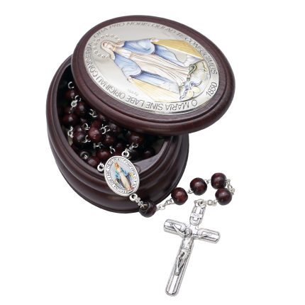 玫瑰念珠-桃木套装-无染原罪-彩色-925银浮雕像-带盒