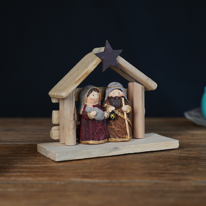 圣诞节-水滴米色摆件-圣诞马槽 -21.5x12cm