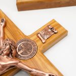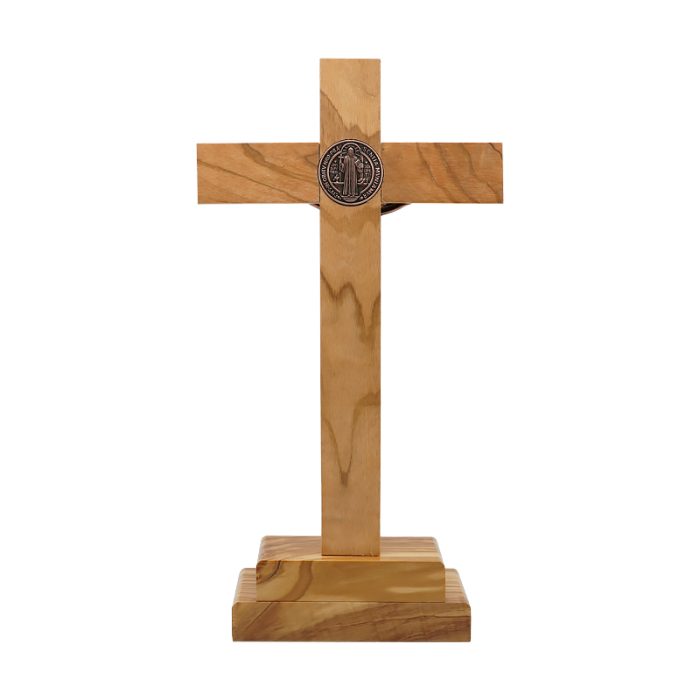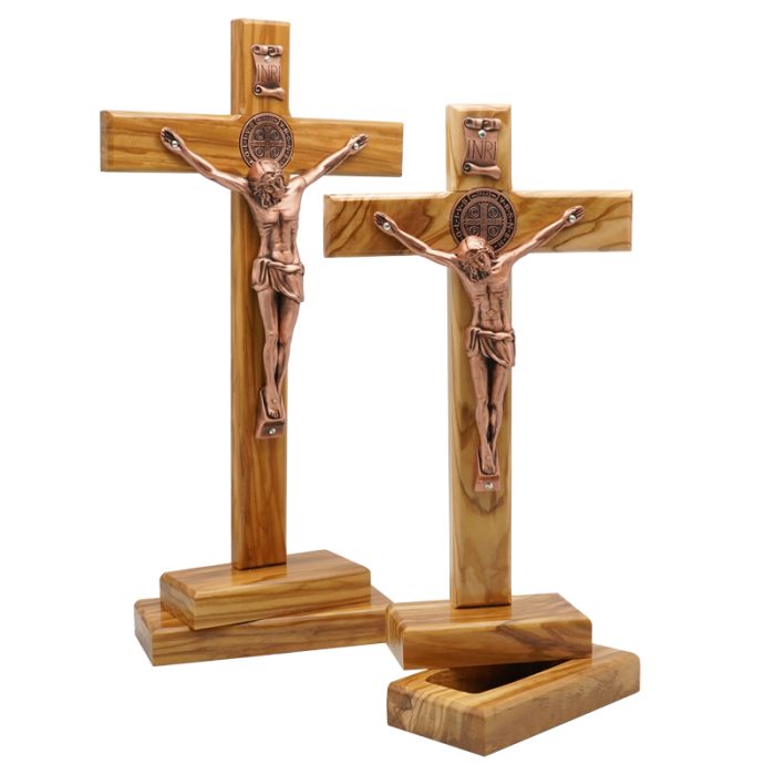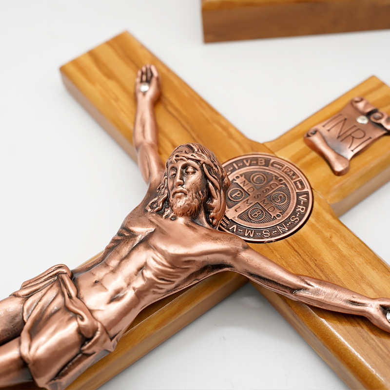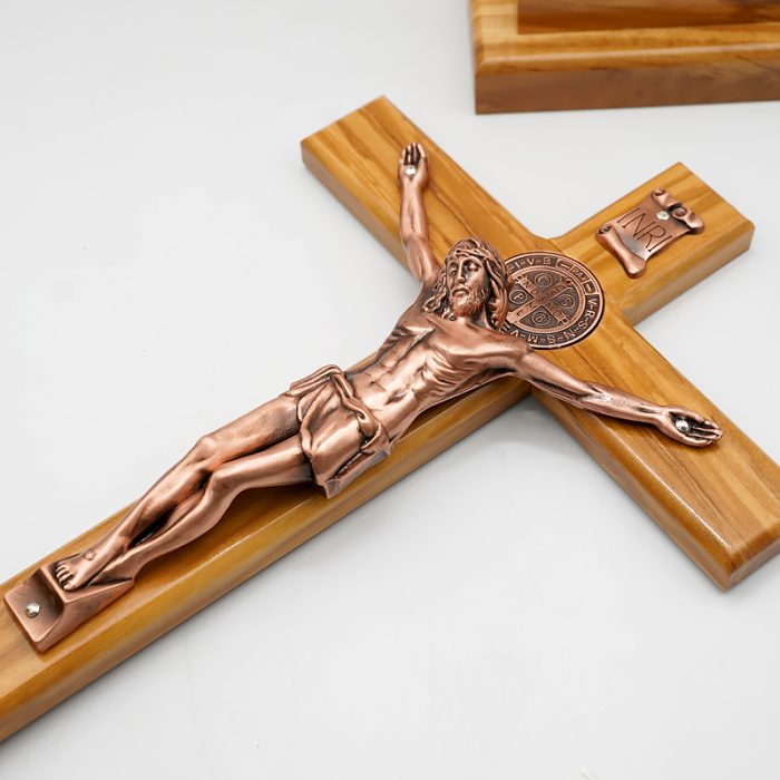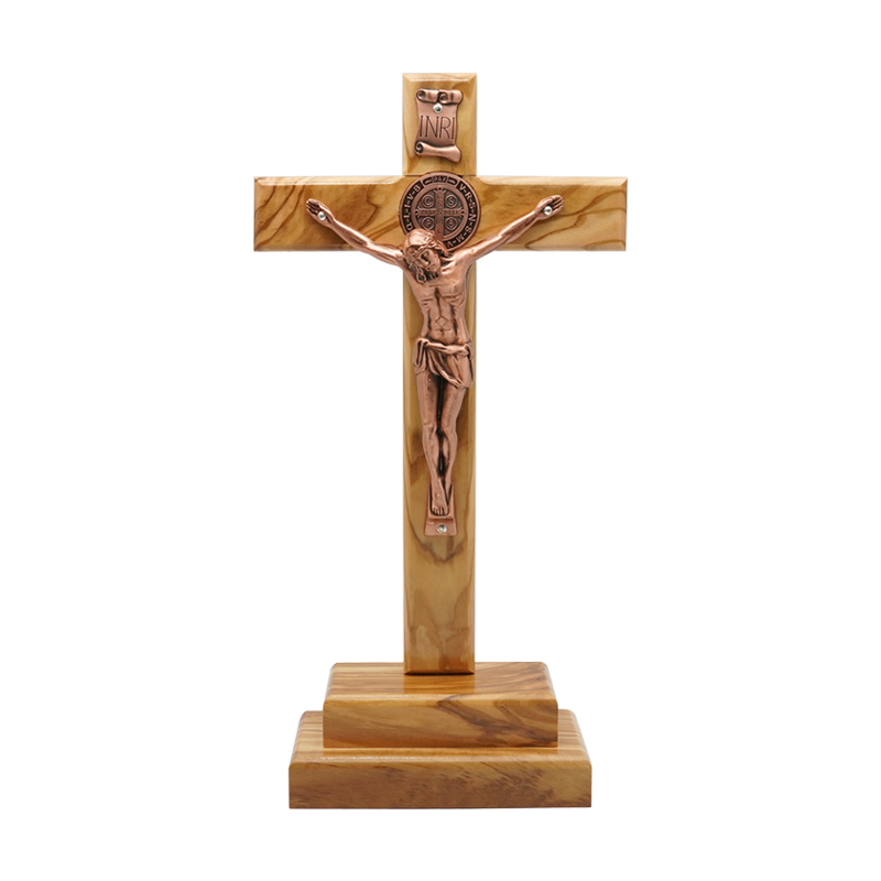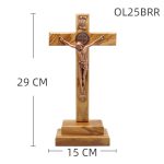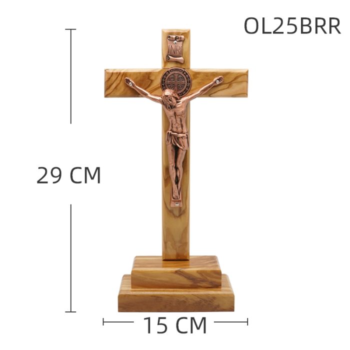 橄榄木苦像十字-红铜色圣尸带底座-25x15cm