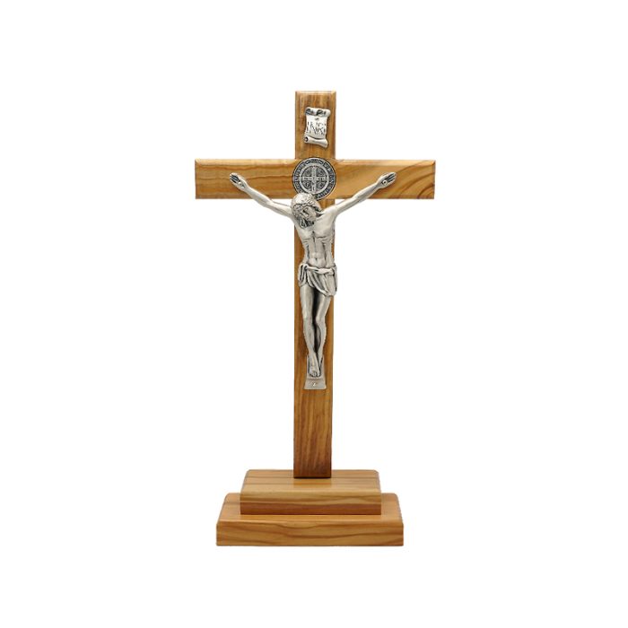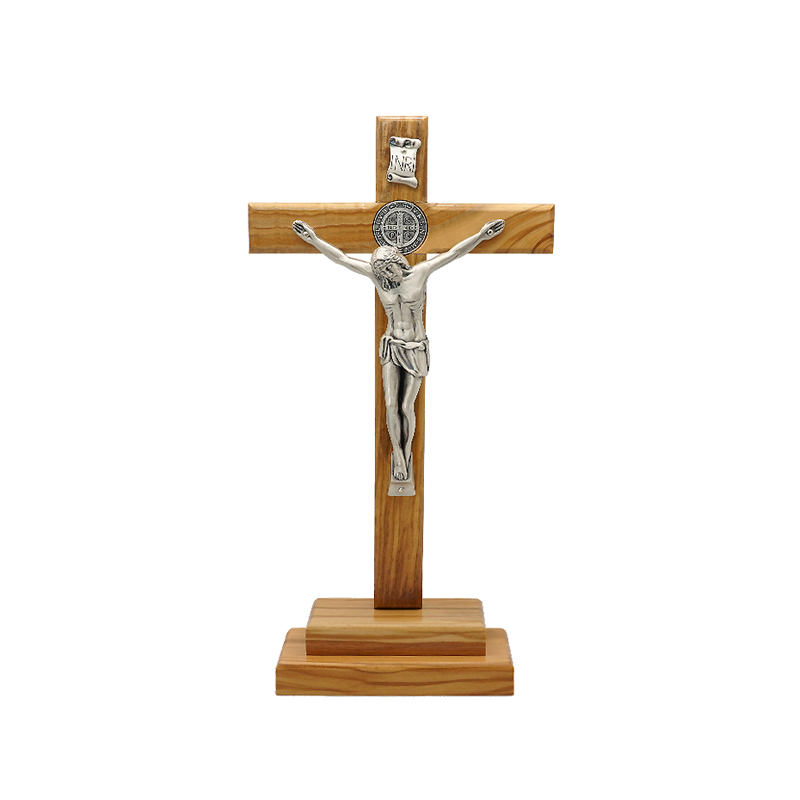 橄榄木苦像十字-银色圣尸带底座-29x15cm