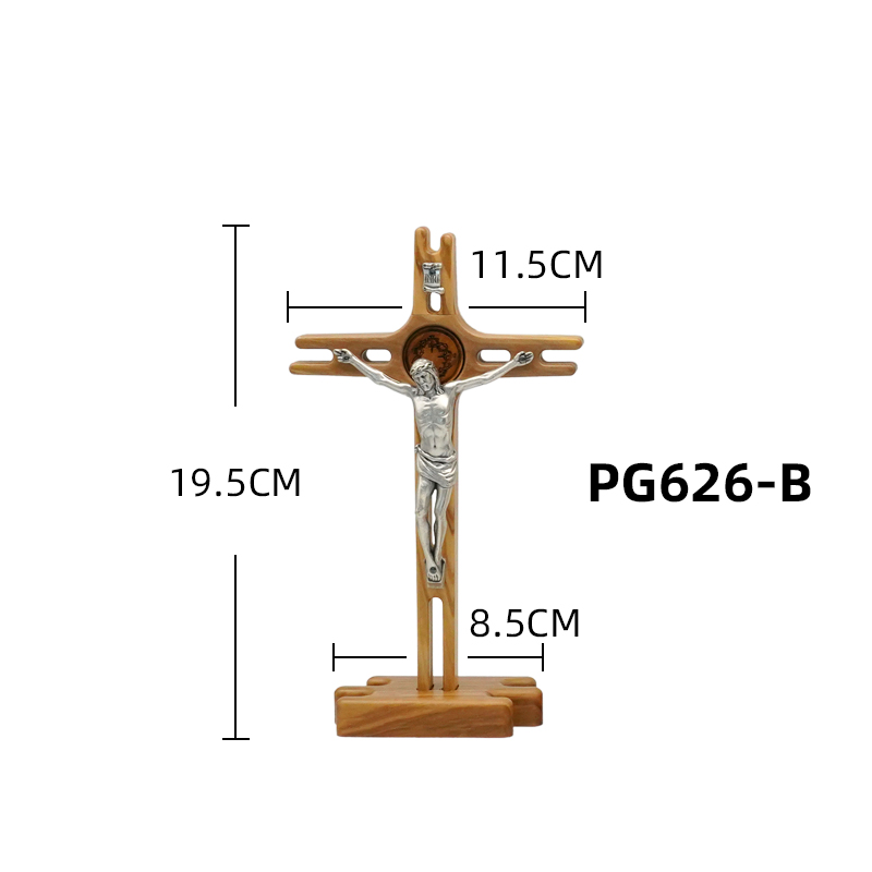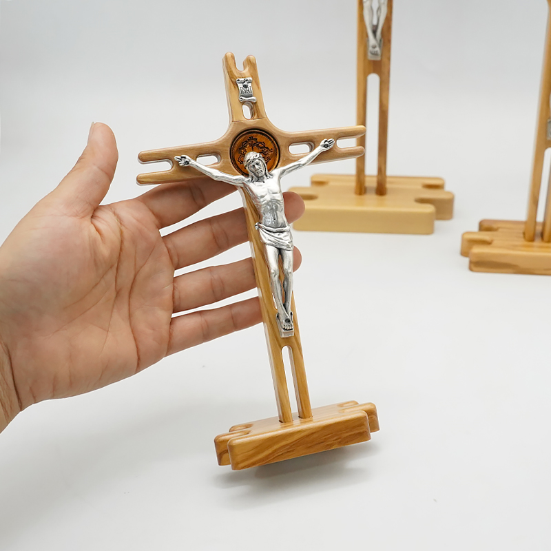 十字架-橄榄木镂空-带合金圣尸底座-19.5×11.5cm