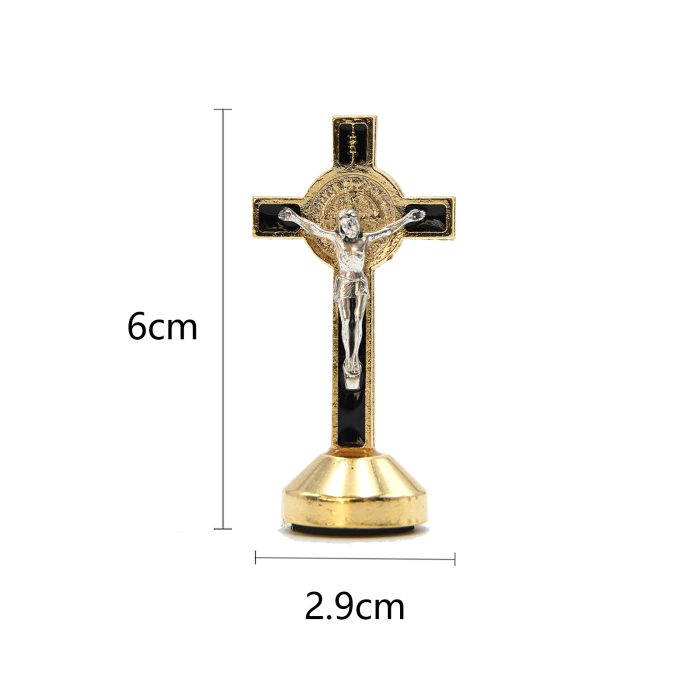本笃驱魔十字架-金色黑珐琅带底座-6×2.9cm