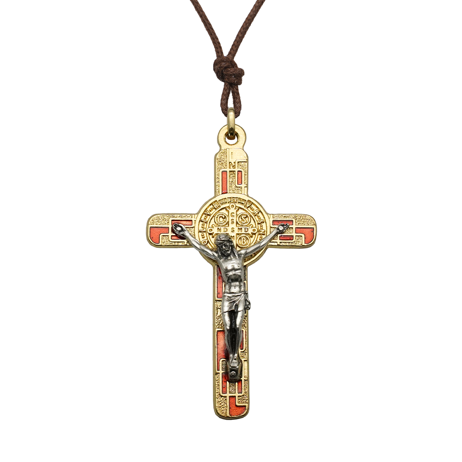 合金圣本笃十字架-金色-红珐琅-带包装盒-7.5×4.5cm
