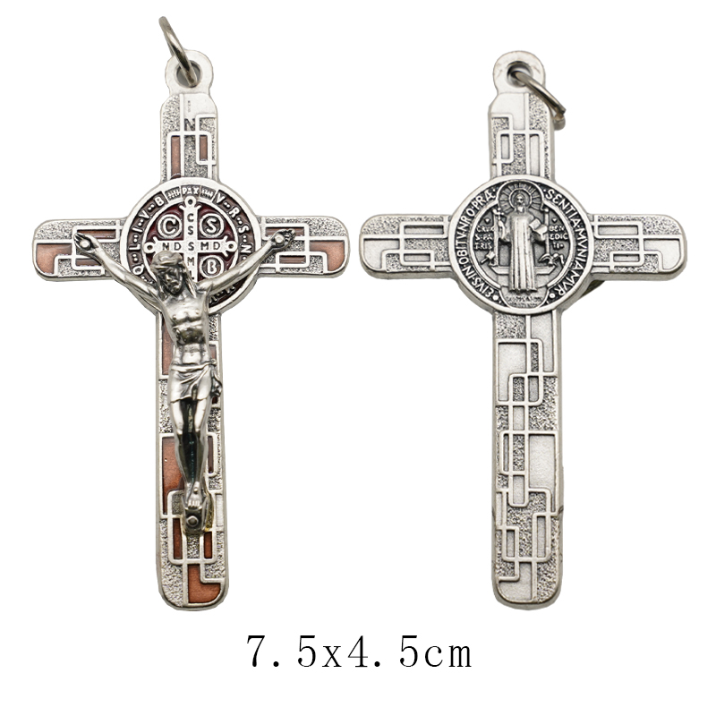配件十字架-圣本笃-带装饰图案-镀银-珐琅处理-7.5×4.2cm-红色