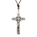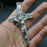 十字架项链-圣本笃-橄榄木-银色圣尸和圣牌-7.5cm