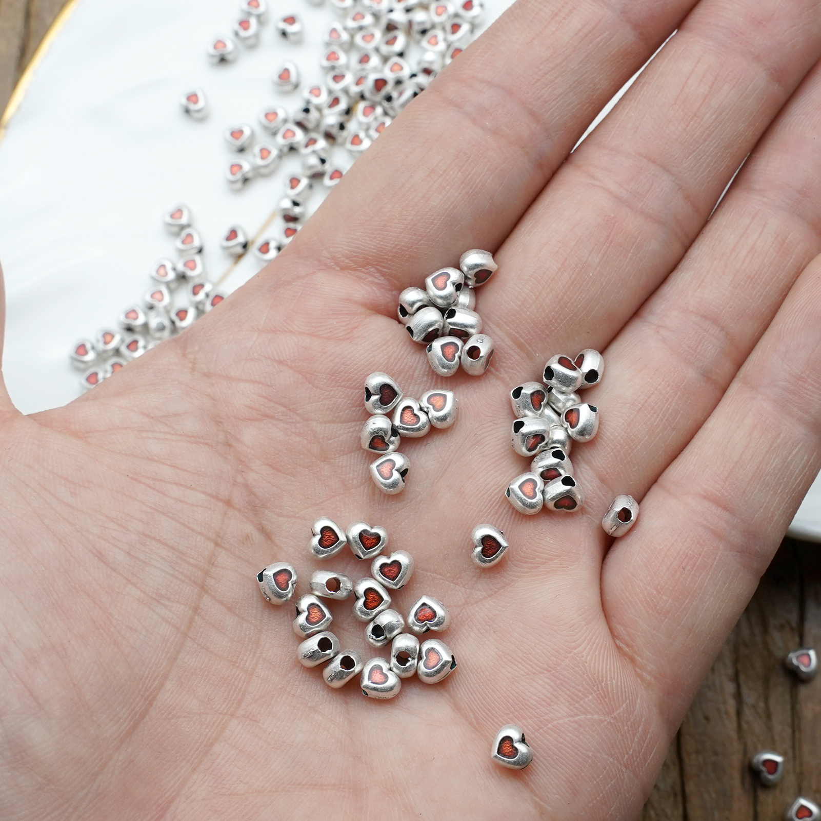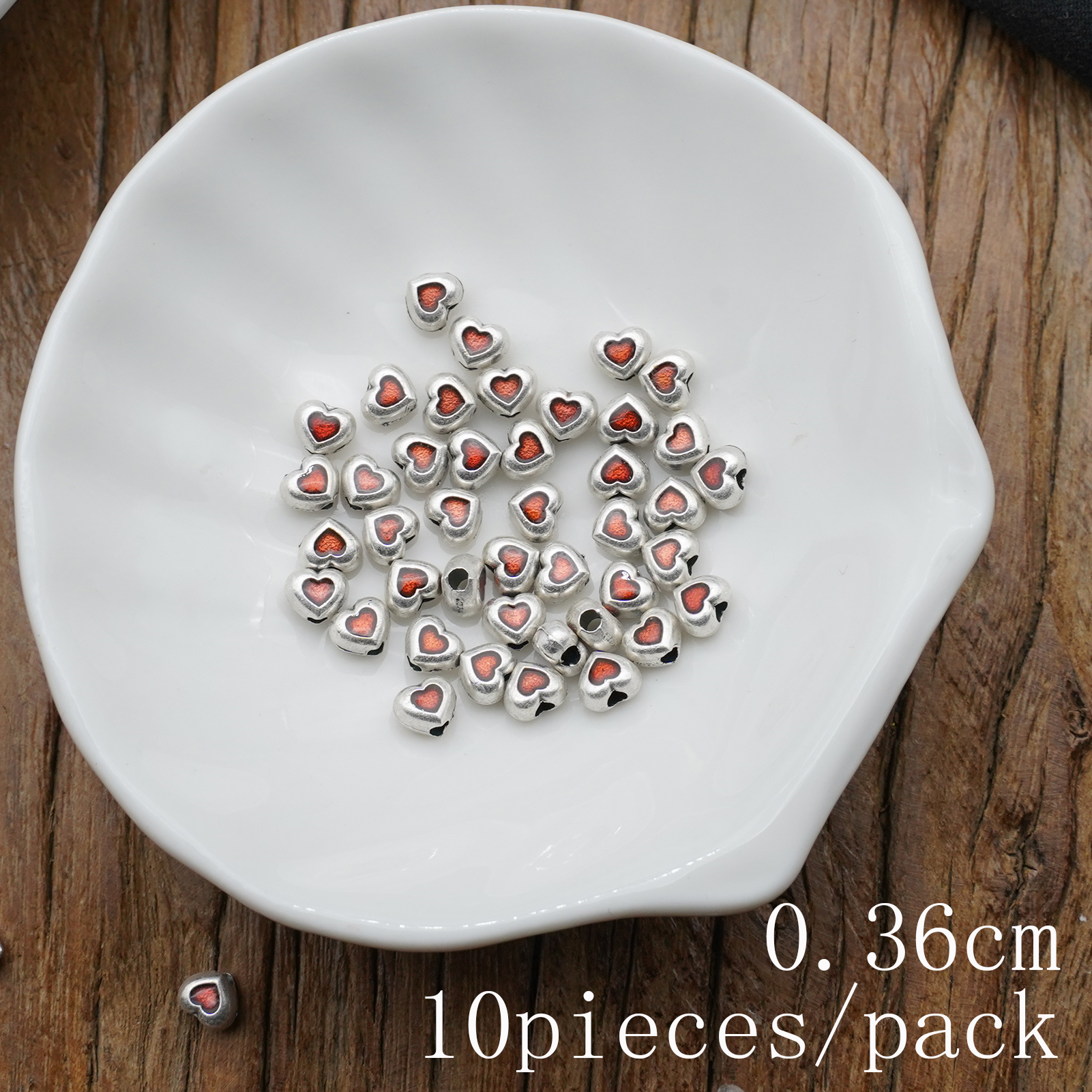 DIY珠子-普通款-小桃心-锌合金-珐琅红-0.36cm-10颗/包