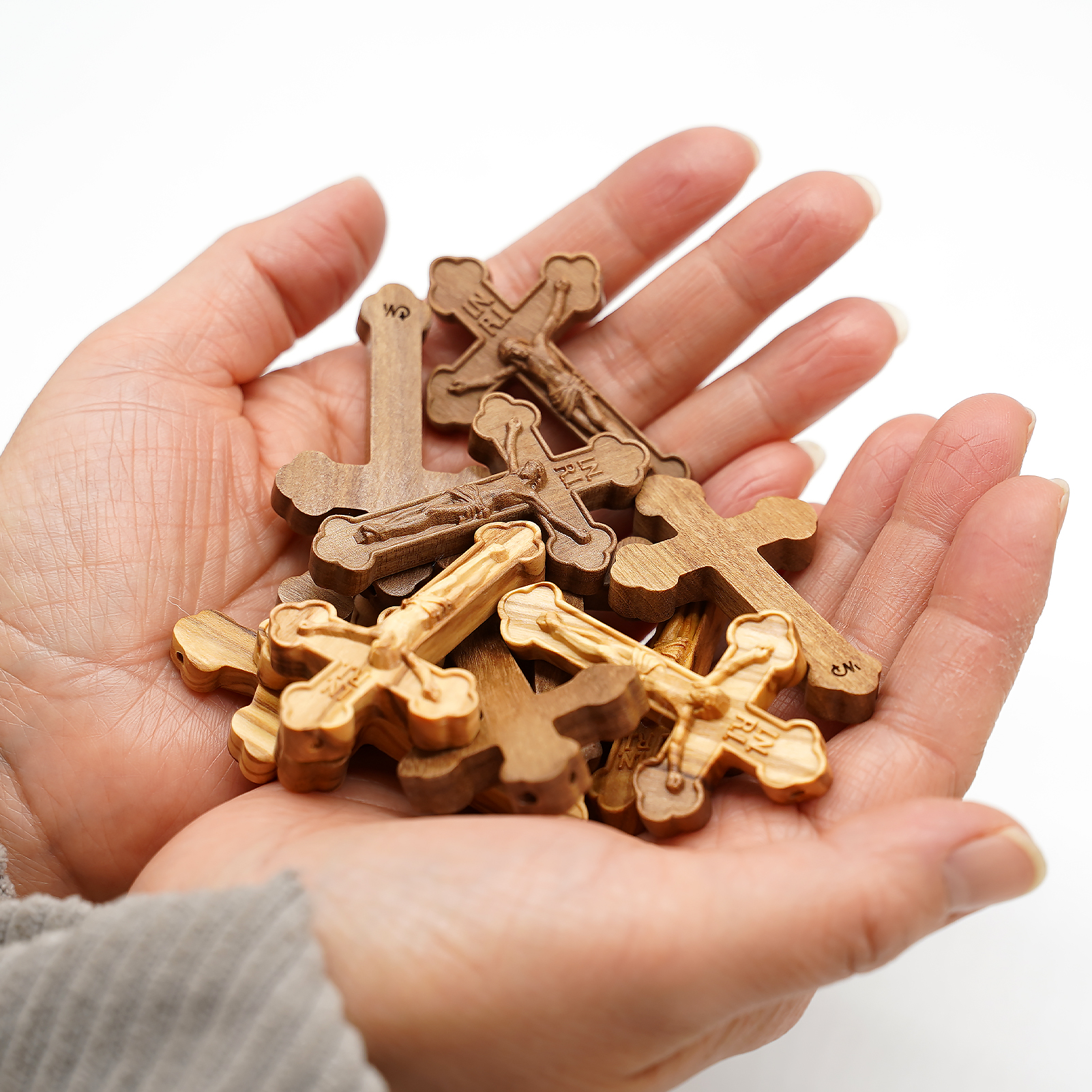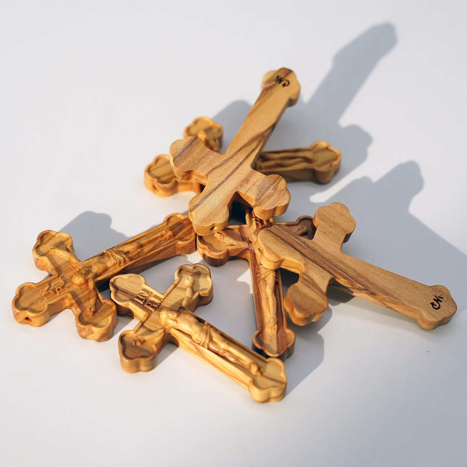 DIY十字架-橄榄木-浅色简约纹-5.5×3.5cm