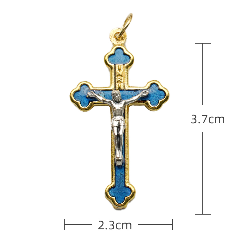 DIY十字架-锌合金+金色-蓝色珐琅彩-3.7×2.3cm