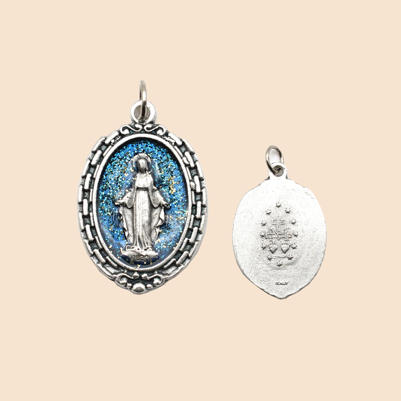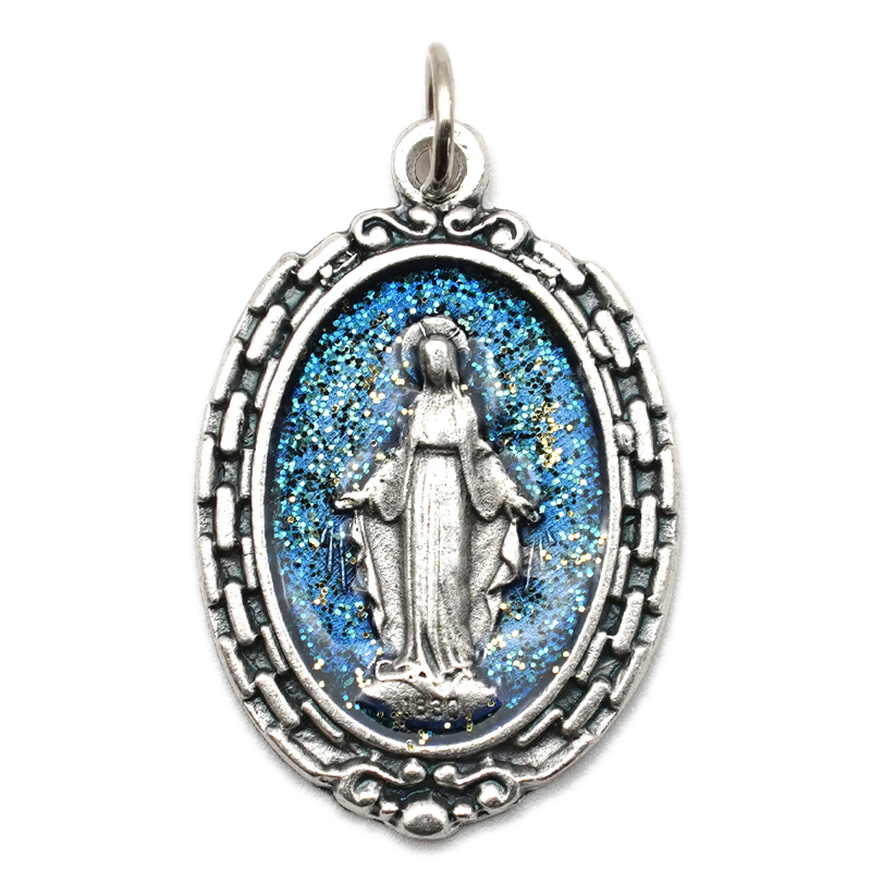 DIY小吊牌-圣母显灵-锌合金-蓝珐琅-2.8cm