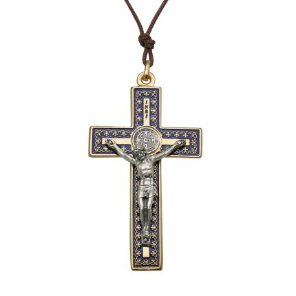 十字架项链-圣本笃-橄榄木-银色圣尸和圣牌-7.5cm