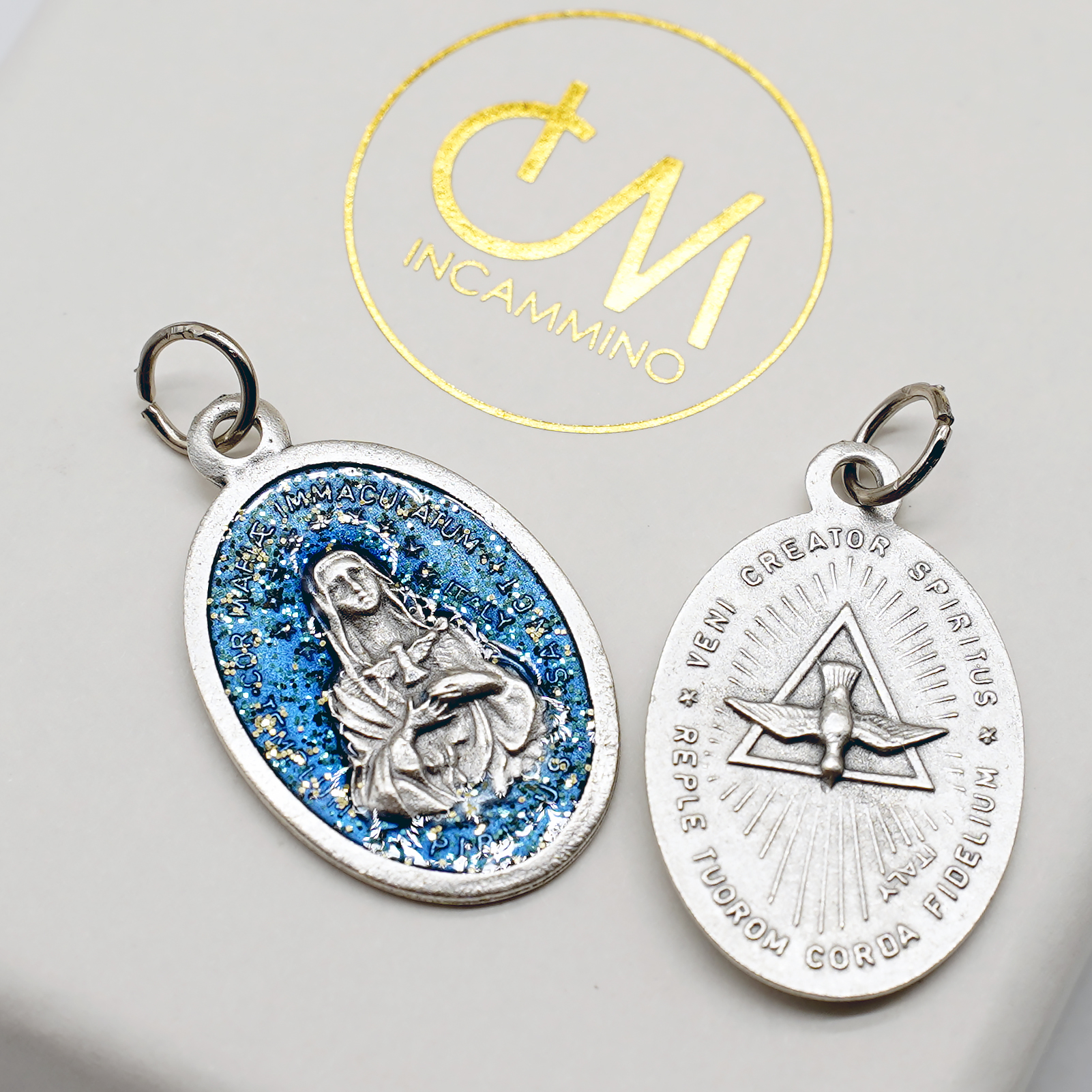 合金圣牌-圣神-蓝珐琅带圈2.5×1.8cm