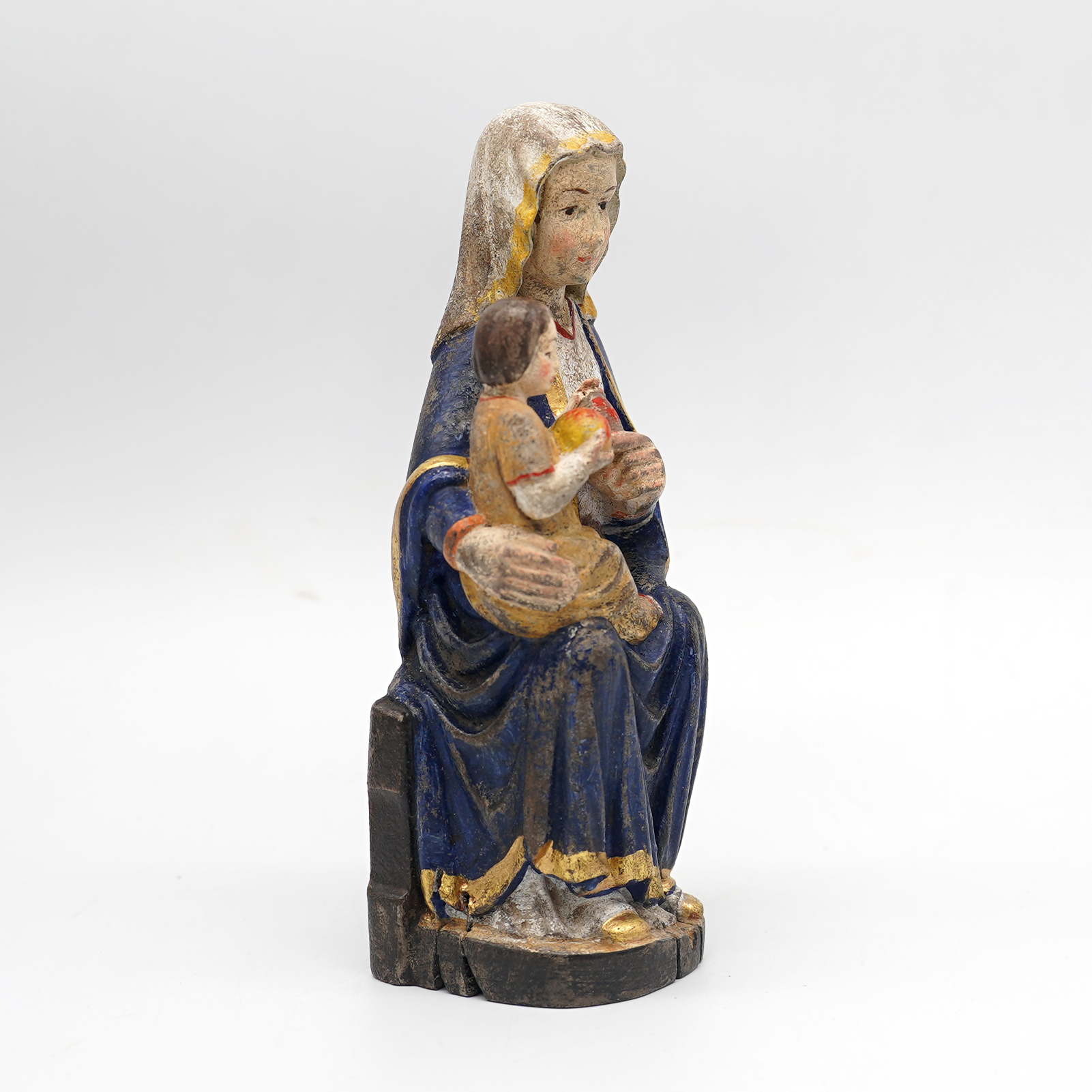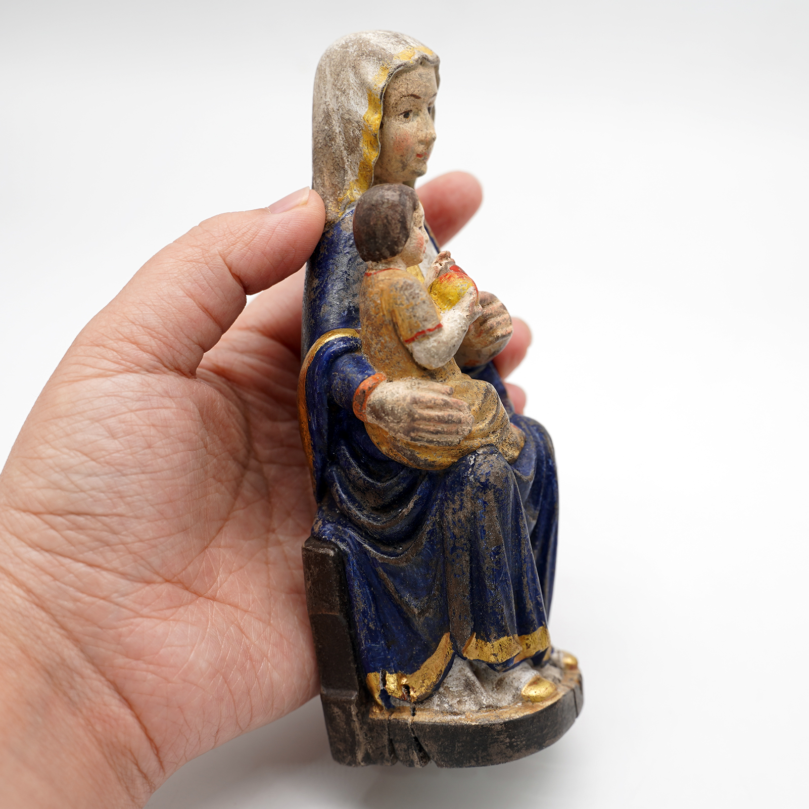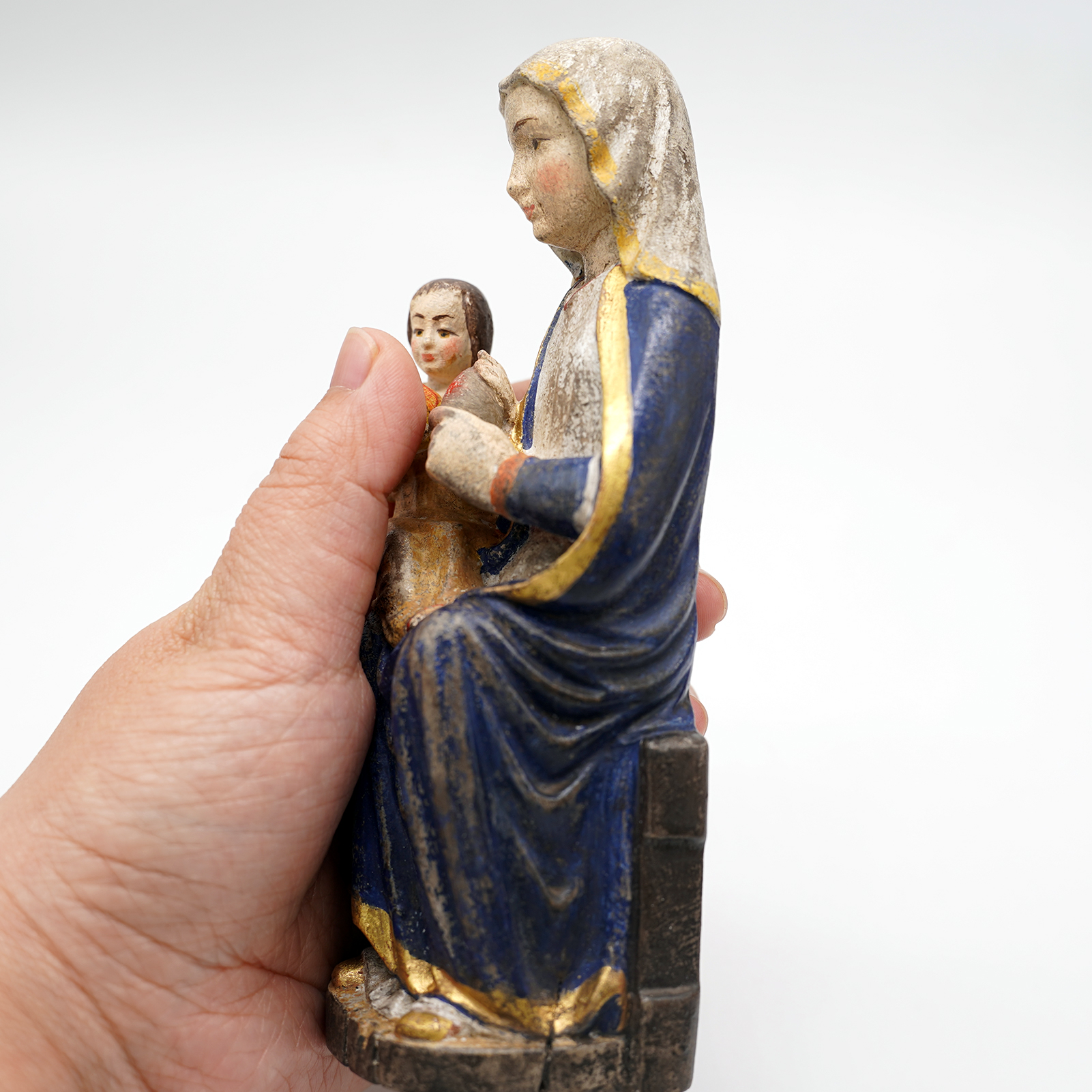 【现货】木雕-玛丽亚采尔圣母坐姿-圣像摆件-复古金边-16cm