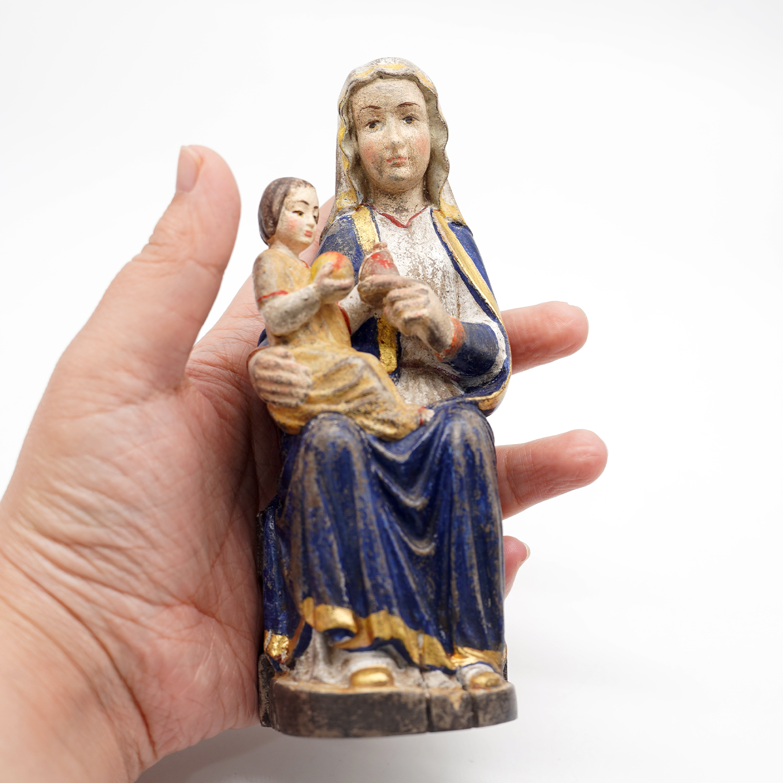 成为第一个“【现货】木雕-玛丽亚采尔圣母坐姿-圣像摆件-复古金边-16cm” 的评价者