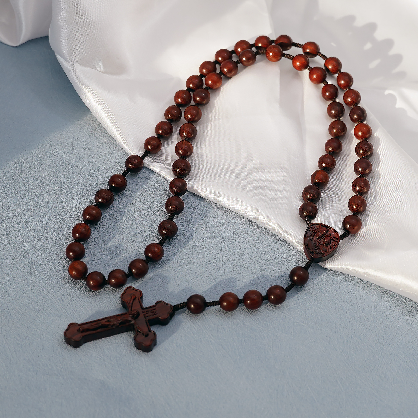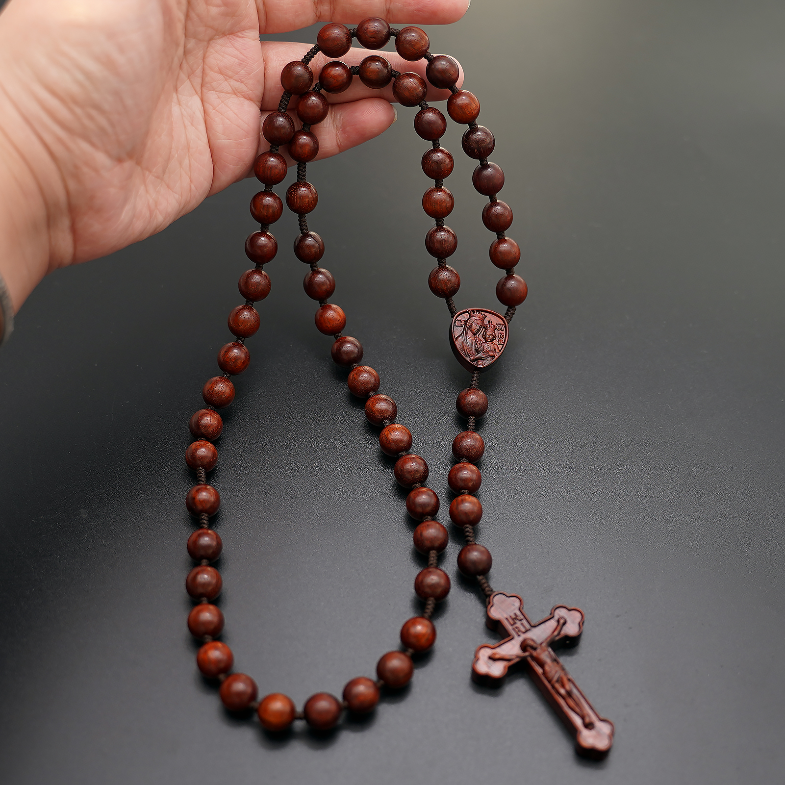 玫瑰念珠-皇冠圣母子-黑檀-绳编-10mm送念珠包