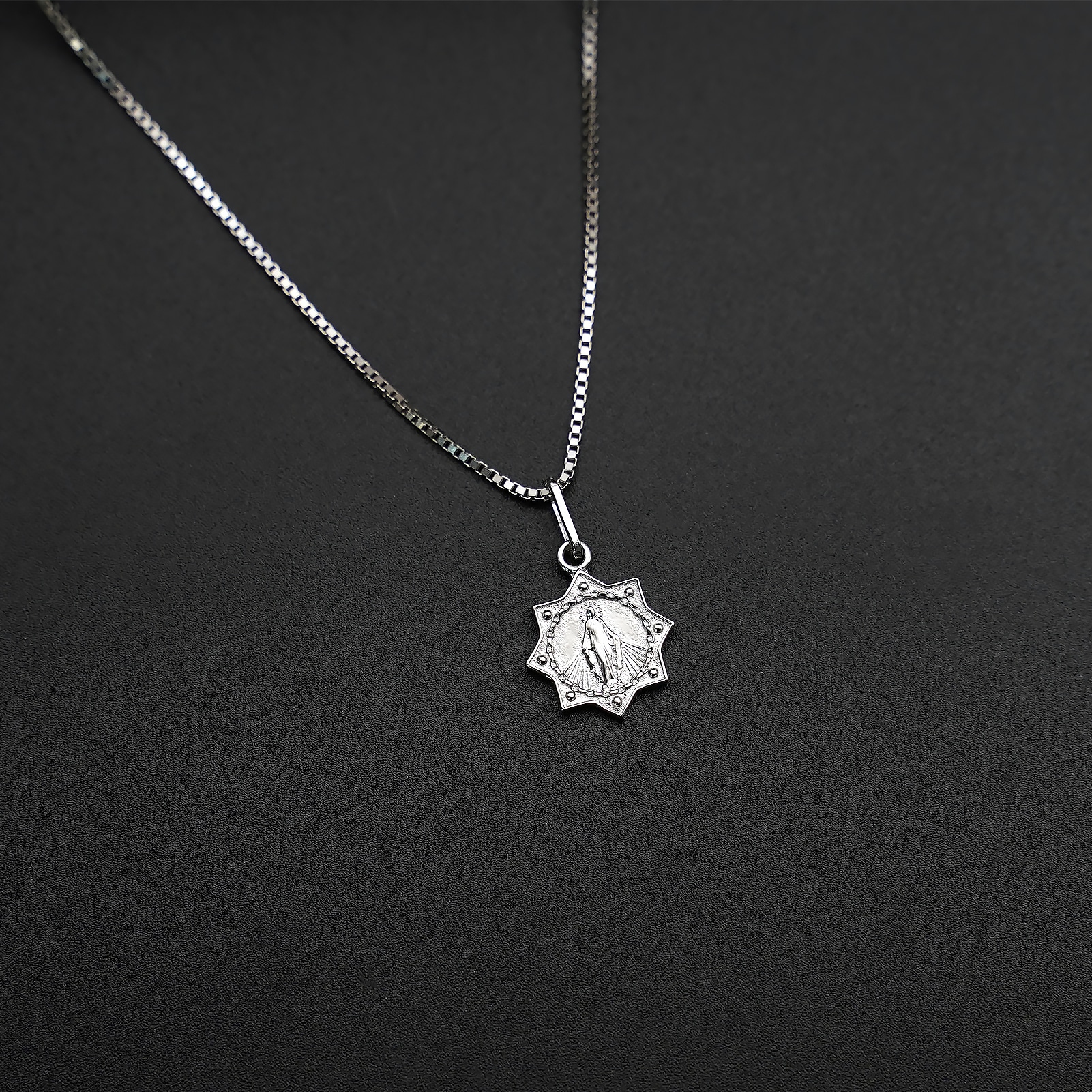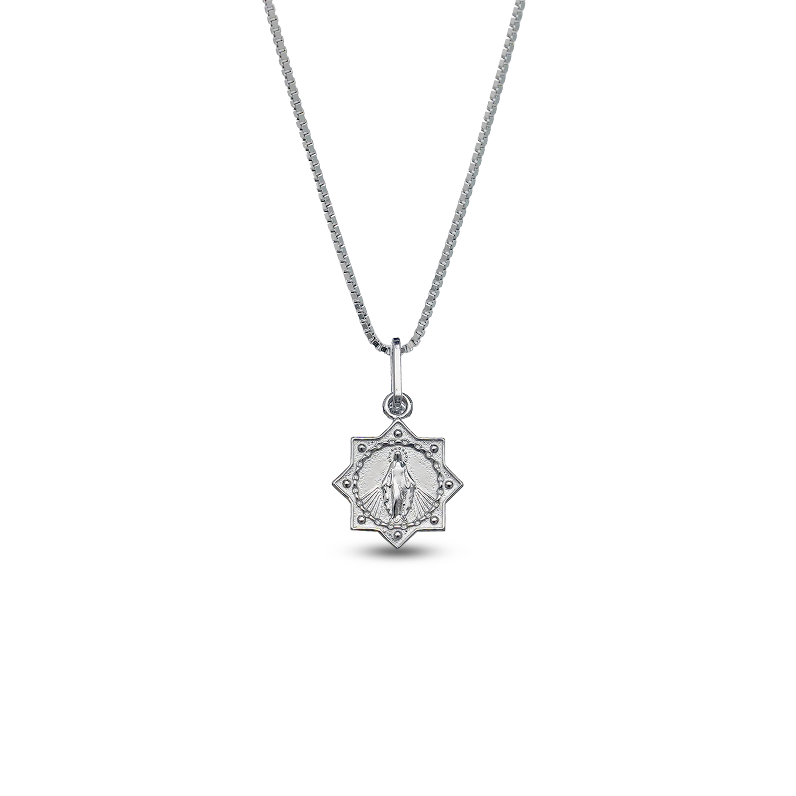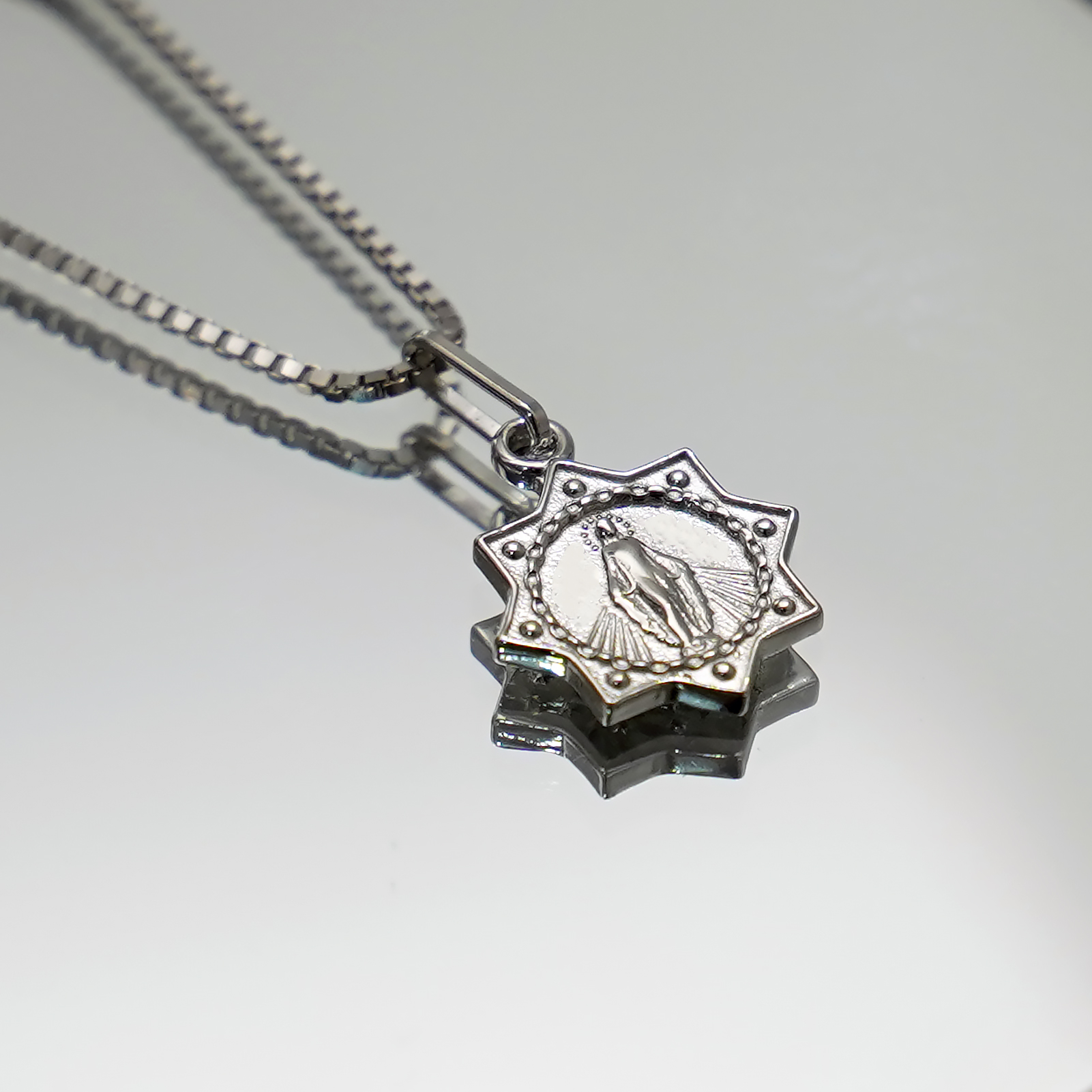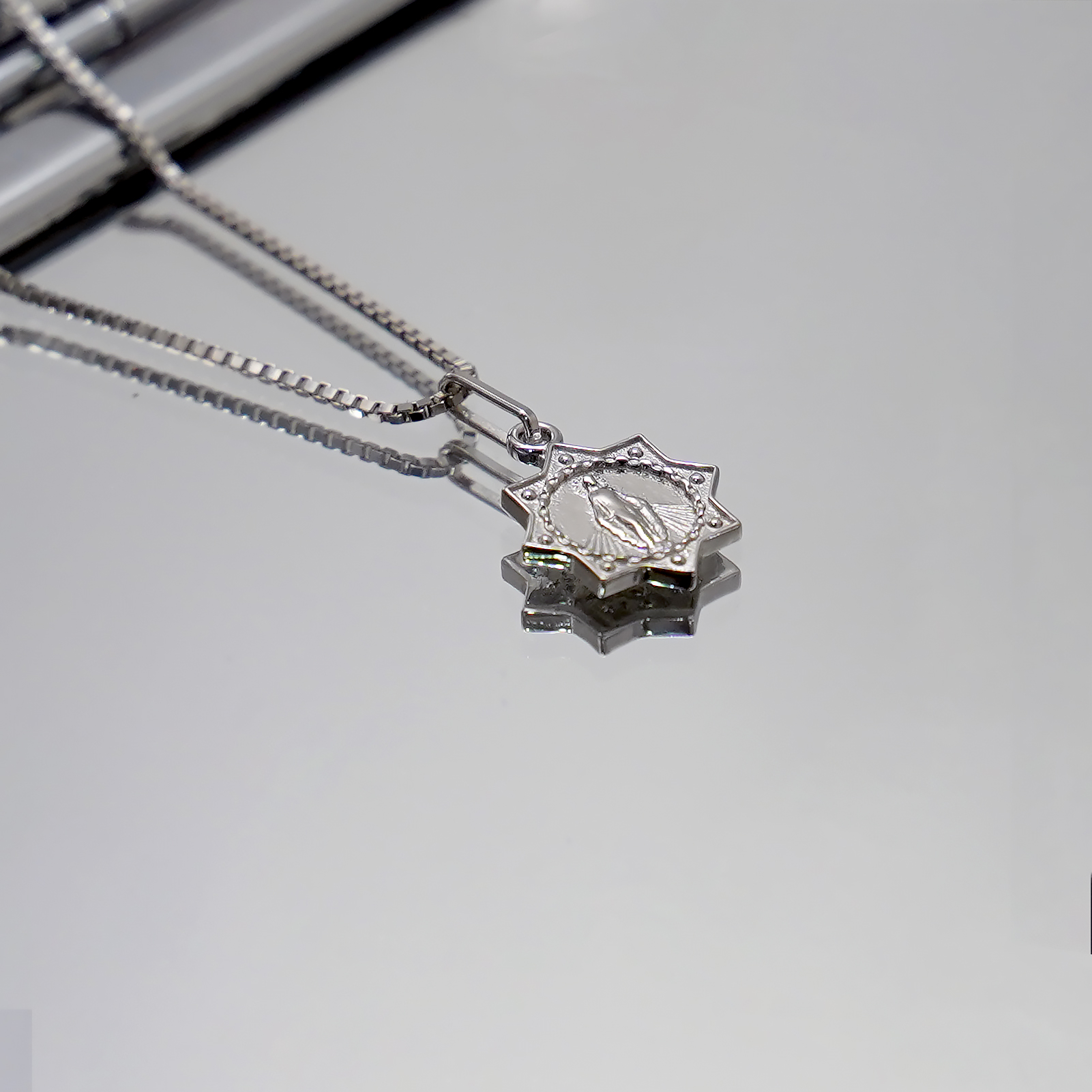 圣母显灵吊坠1.0cm925银盒子链0.8MM 白金色