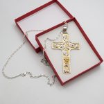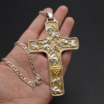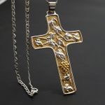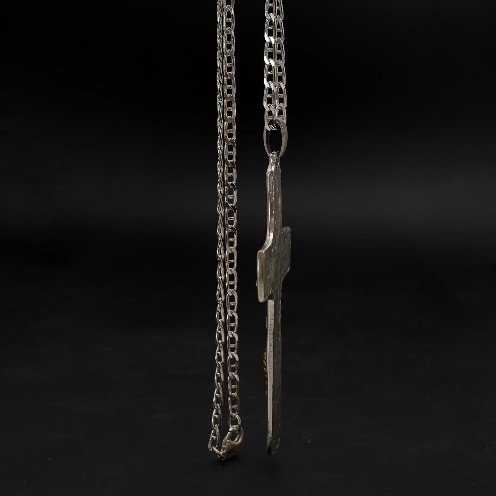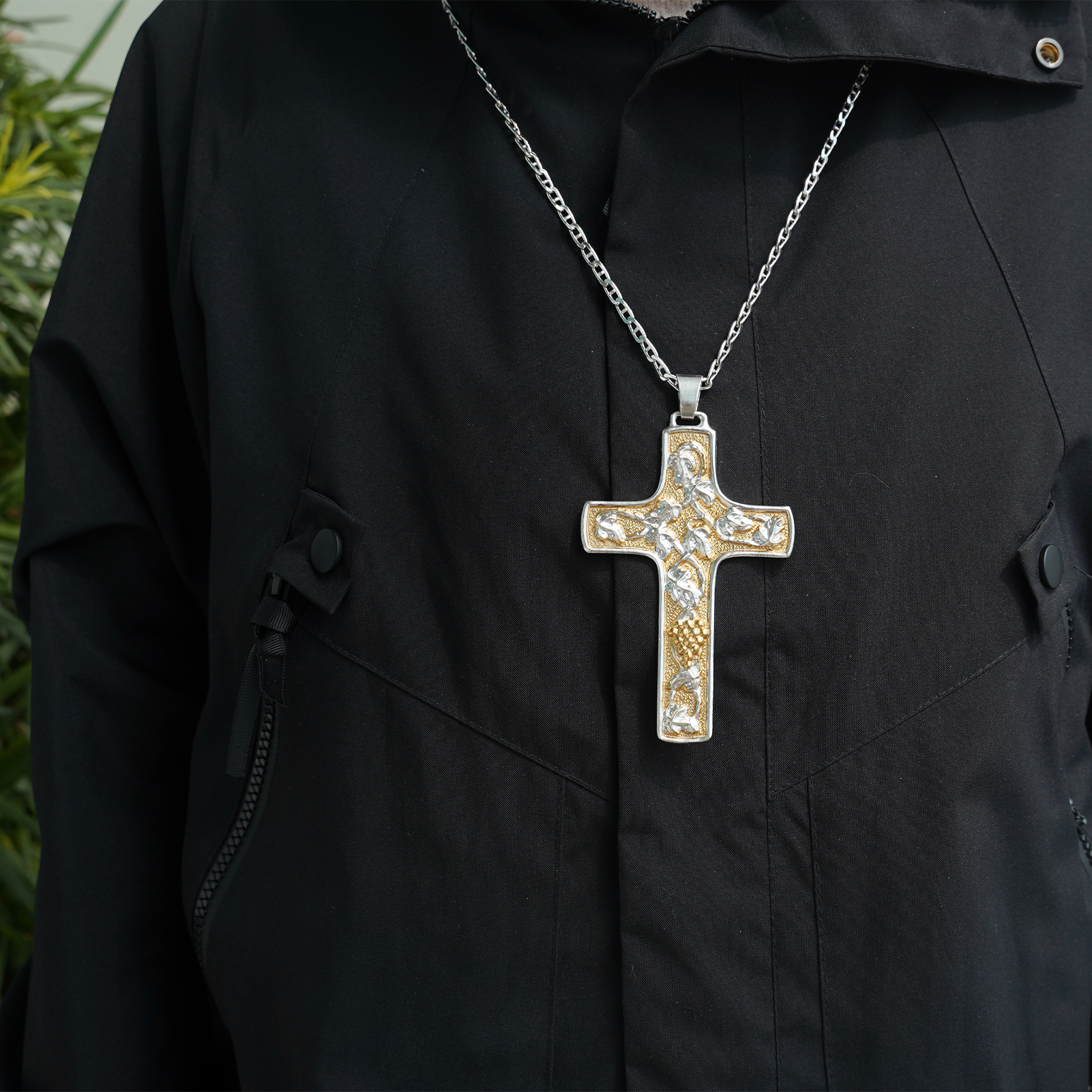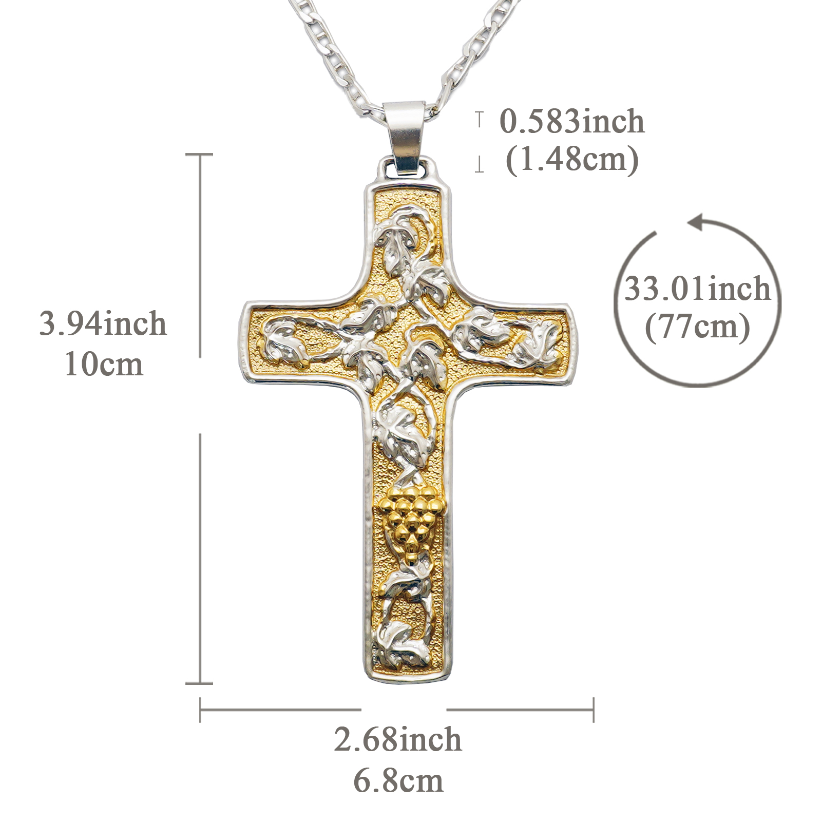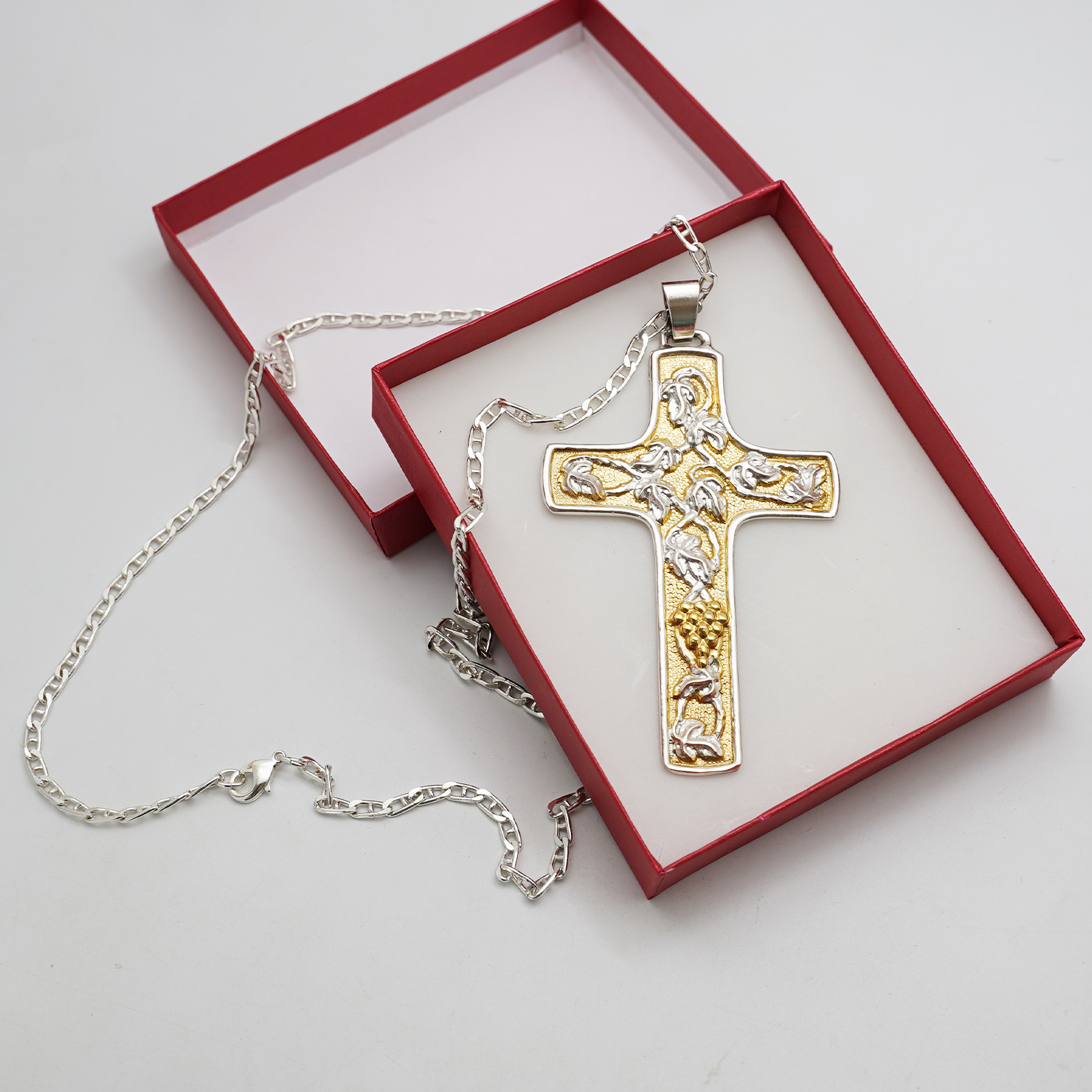 十字架项链-圣本笃-橄榄木-银色圣尸和圣牌-7.5cm