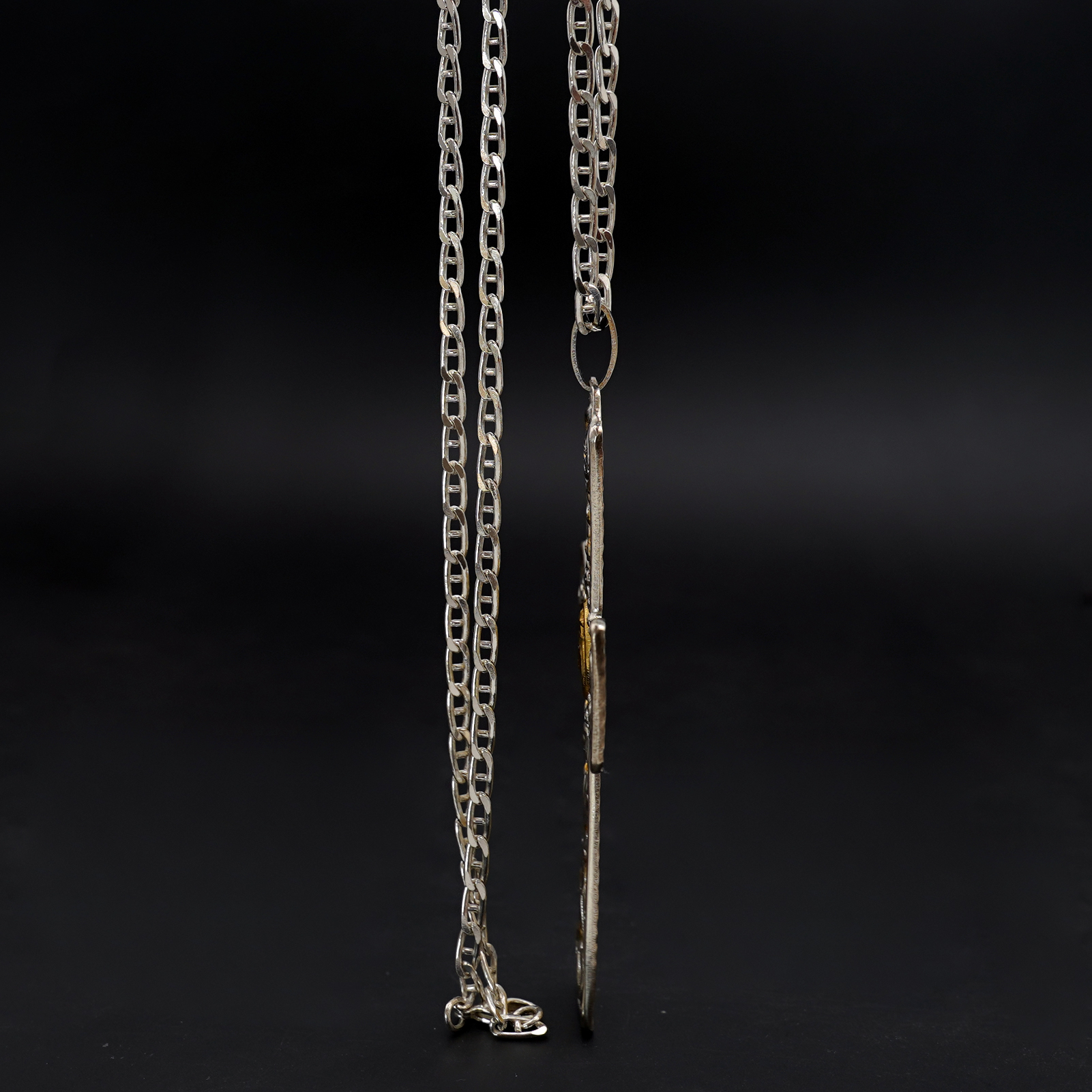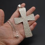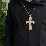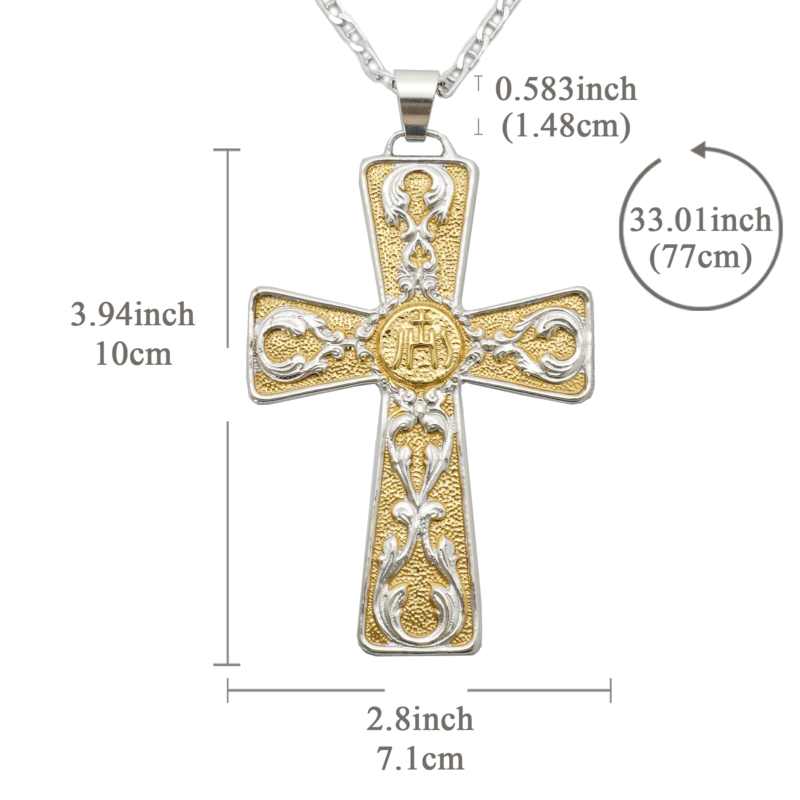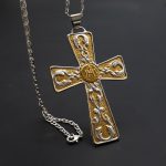 十字架项链-圣本笃-橄榄木-银色圣尸和圣牌-7.5cm