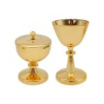 【现货】黄铜-金色圣爵杯圣体盒套装13+14cm
