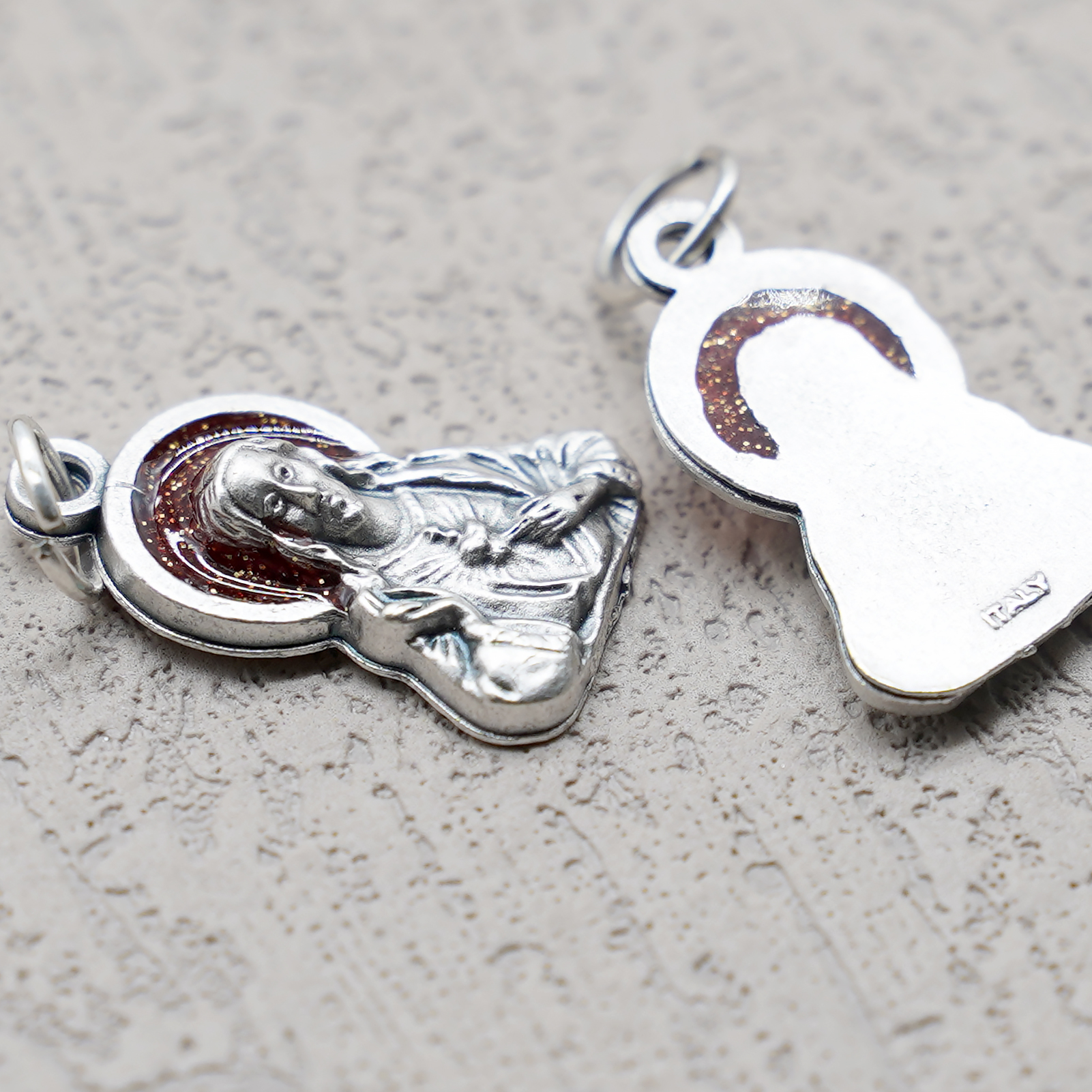 合金圣牌-耶稣圣心-红珐琅带圈-1.8×1.3cm