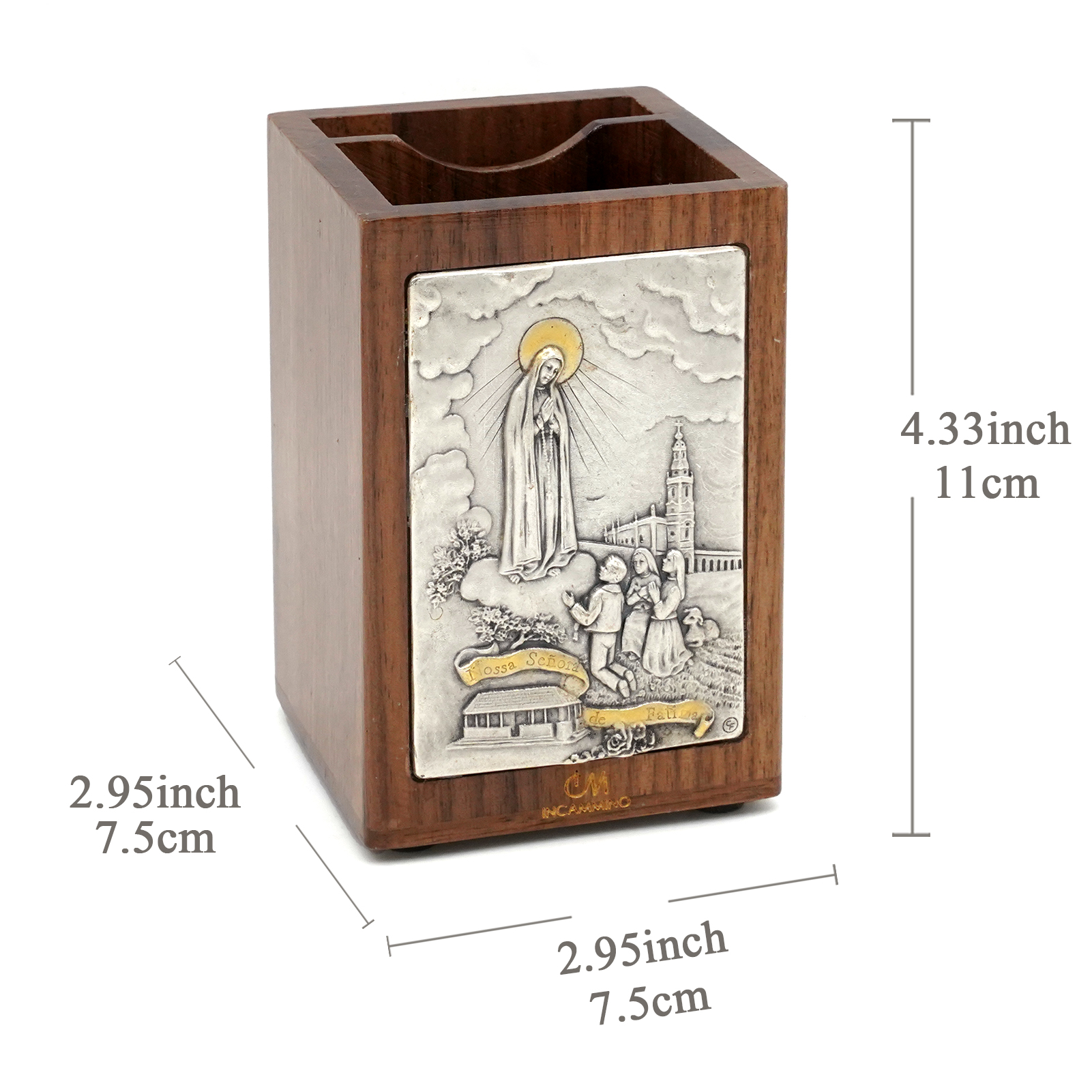笔筒-浮雕圣像-法蒂玛-胡桃木特制纪念款-11×7.5×7.5cm