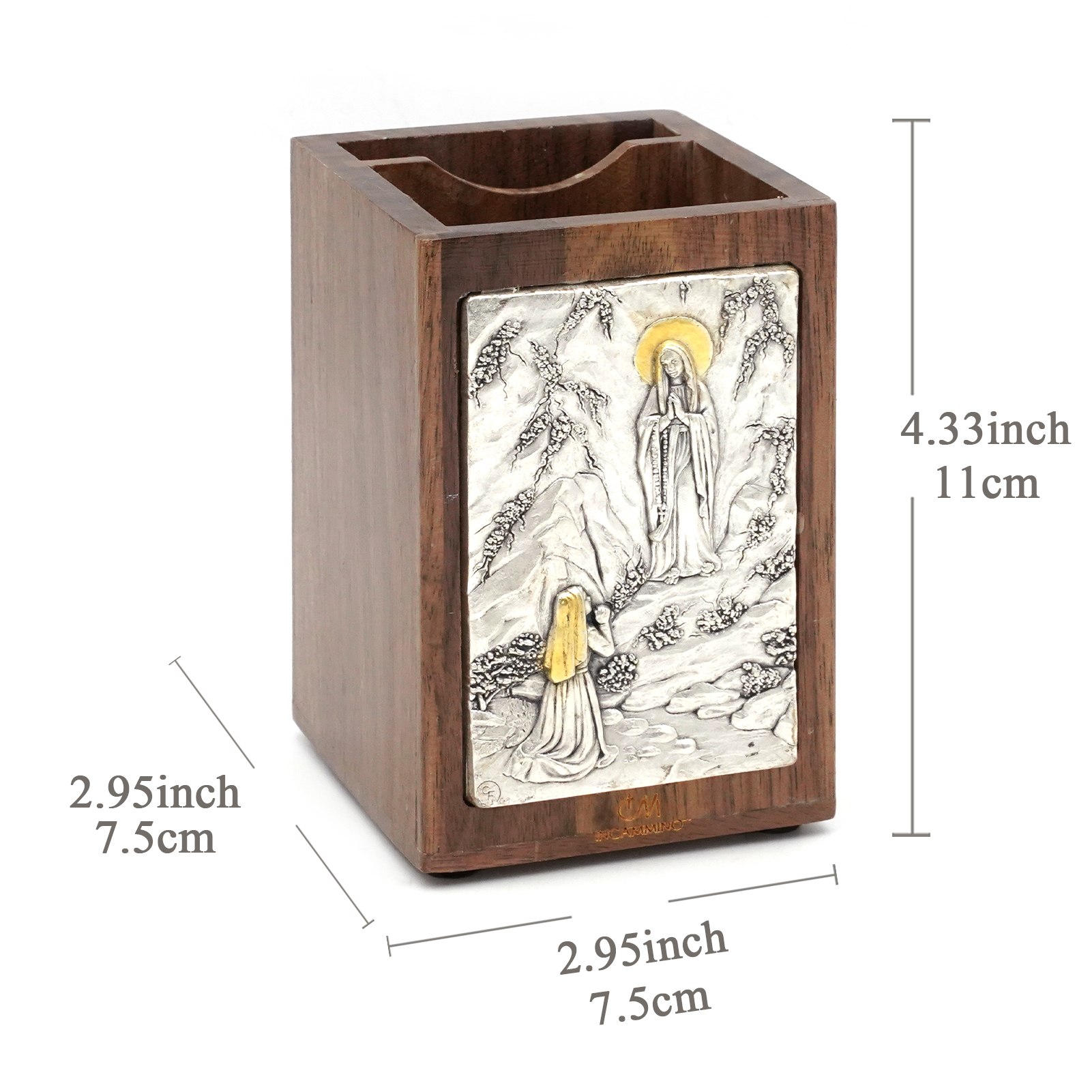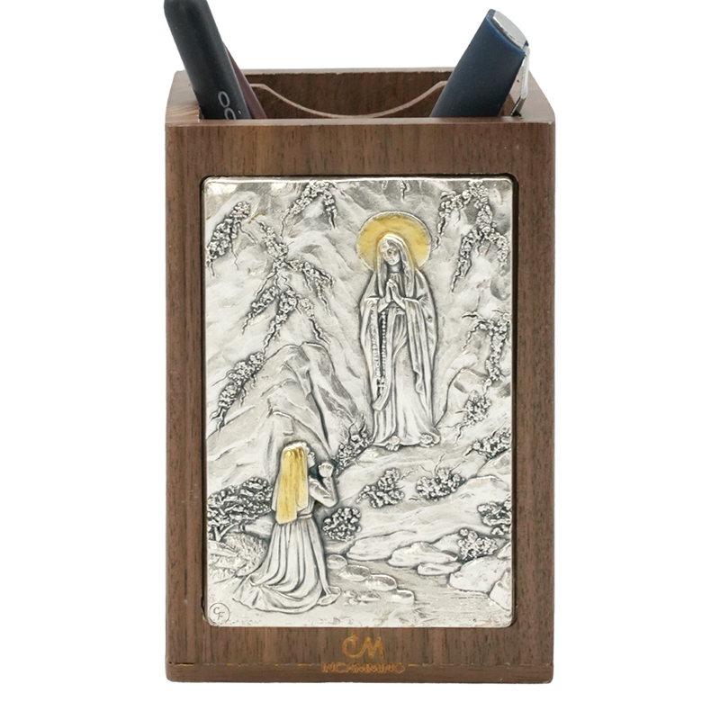 笔筒-浮雕圣像-露德圣母-胡桃木特制纪念款-11×7.5×7.5cm
