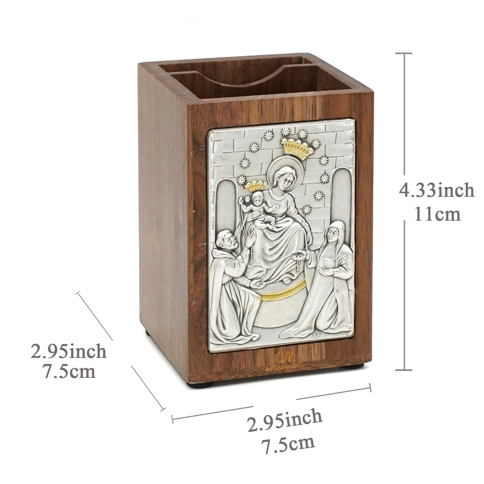 笔筒-浮雕圣像-庞贝圣母-胡桃木特制纪念款-11×7.5×7.5cm