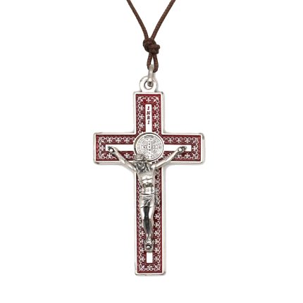 十字架项链-圣本笃-橄榄木-银色圣尸和圣牌-7.5cm