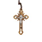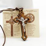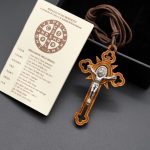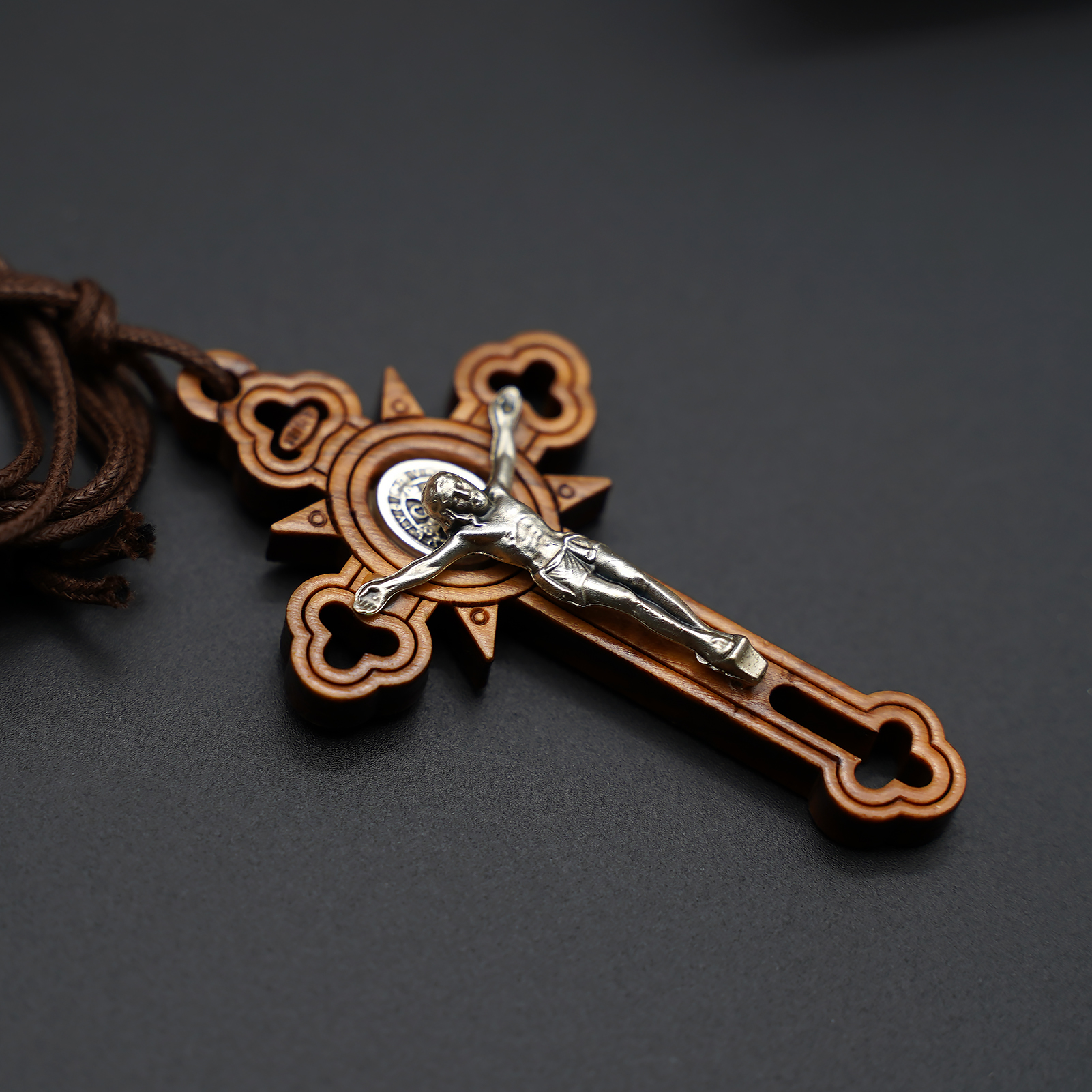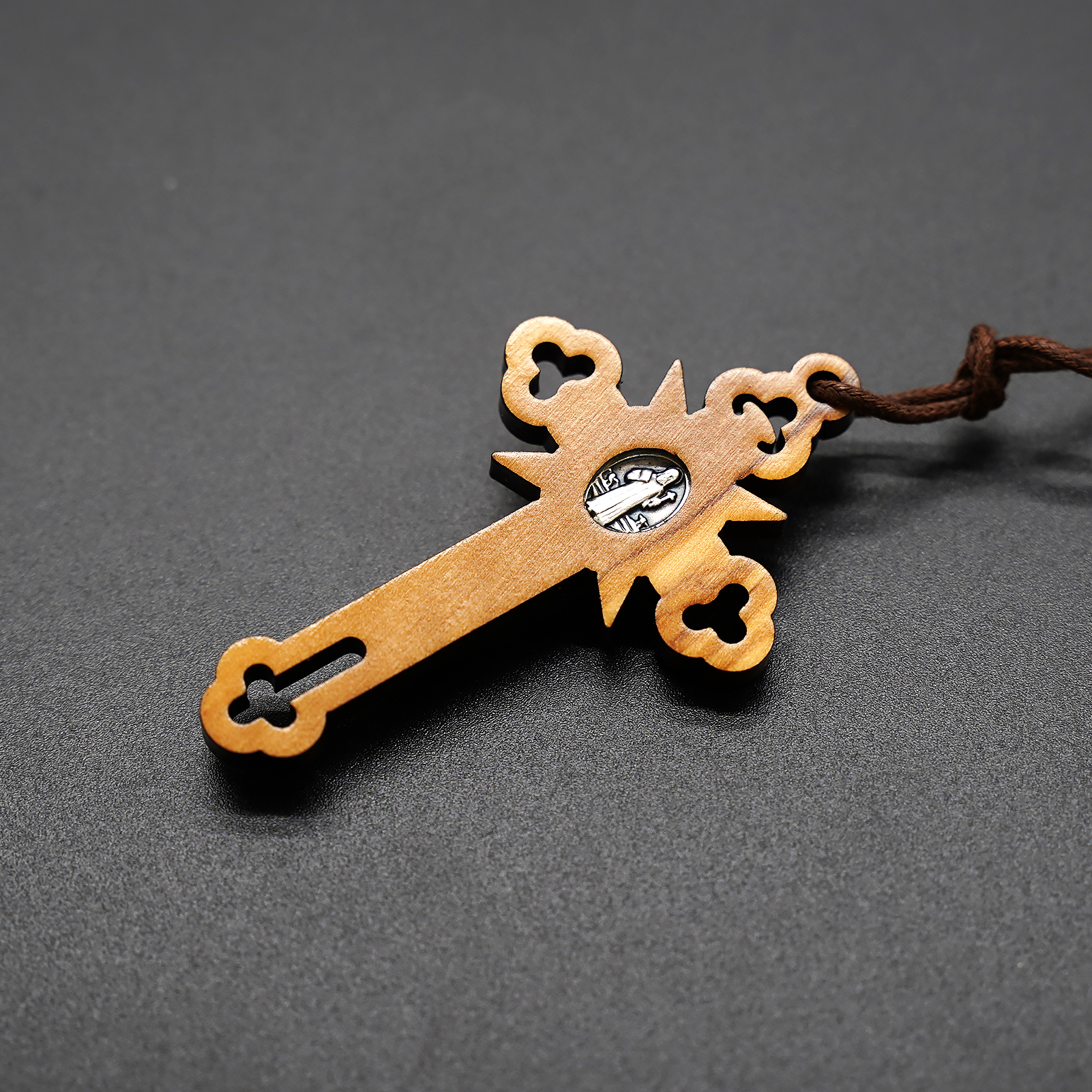 十字架-圣本笃-橄榄木-穿孔设计-椭圆圣牌-带挂绳-5.7×3.5cm