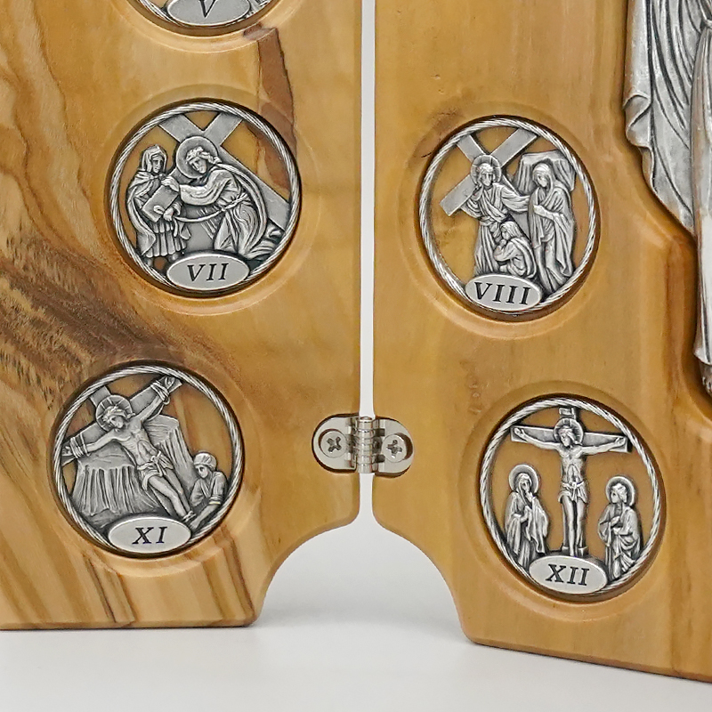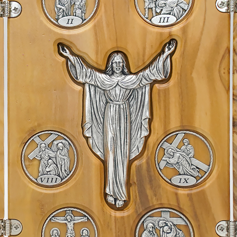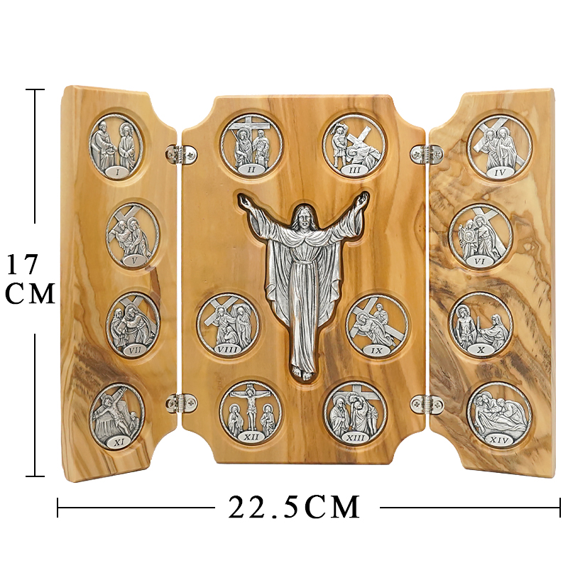 双联橄榄木苦路-圆形合金牌-镀银基督-救世主-17x22.5cm