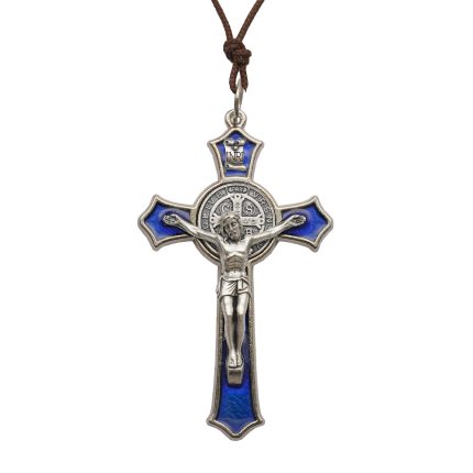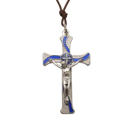 十字架项链-圣本笃-合金-珐琅蓝色-带绳卡片-7.4×4.6cm