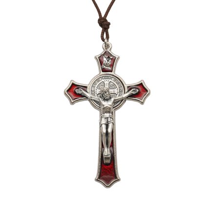 十字架项链-圣本笃-合金-珐琅红色-带绳卡片-7.4×4.6cm